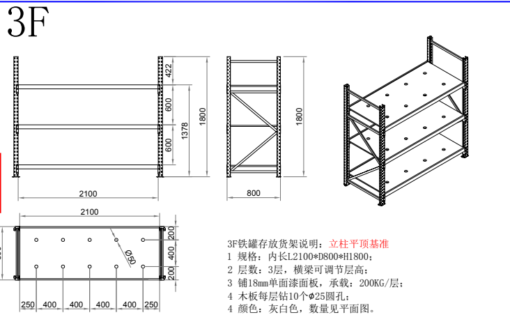 2、鋪18mm單面漆面板配4條支撐梁 承載:500KG/層