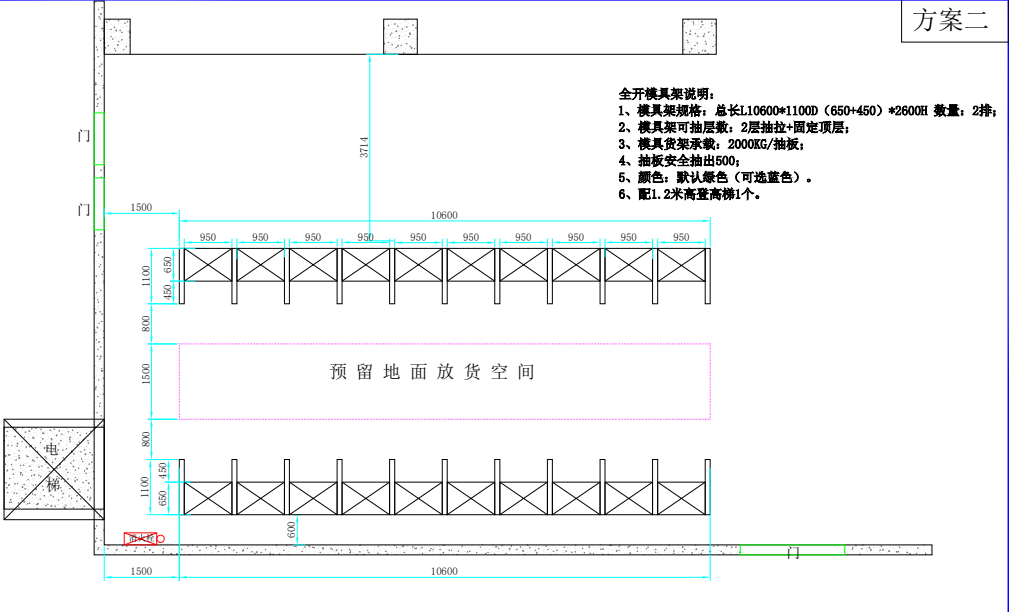 以上案例是最近一個(gè)客戶找到我,讓去看一下他們場(chǎng)地模具幫忙出個(gè)貨架方案,由于客戶的模具是比較大型,重量也比一般的模具要重,我們這邊當(dāng)時(shí)沒(méi)給出方案,和客戶約了時(shí)間去場(chǎng)地實(shí)地考察,工程考察完根據(jù)客戶場(chǎng)地模具大小的實(shí)際情況給客戶出了兩個(gè)方案,最后客戶選擇了方案2